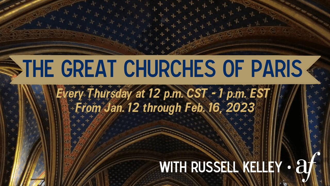 Following the success of the Grands Châteaux of the Loire and Ile-de-France and The Making of the French Garden series of online talks, Russell Kelley spent the summer visiting the most beautiful churches of Paris! Our curator extraordinaire returns to offer a series of 6 talks packed with information about another important pillar of France’s cultural and architectural heritage: the extraordinary variety of churches that were built in every commune in France – but especially in Paris – over the past one thousand years.